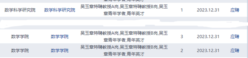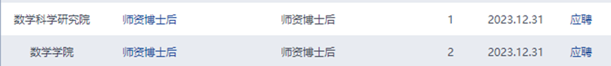 数学学院、数学科学研究院教师及师资博士后招聘岗位数量、任职要求、岗位职责等详见中国人民大学人才招聘网:zhaopin.ruc.edu.cn。